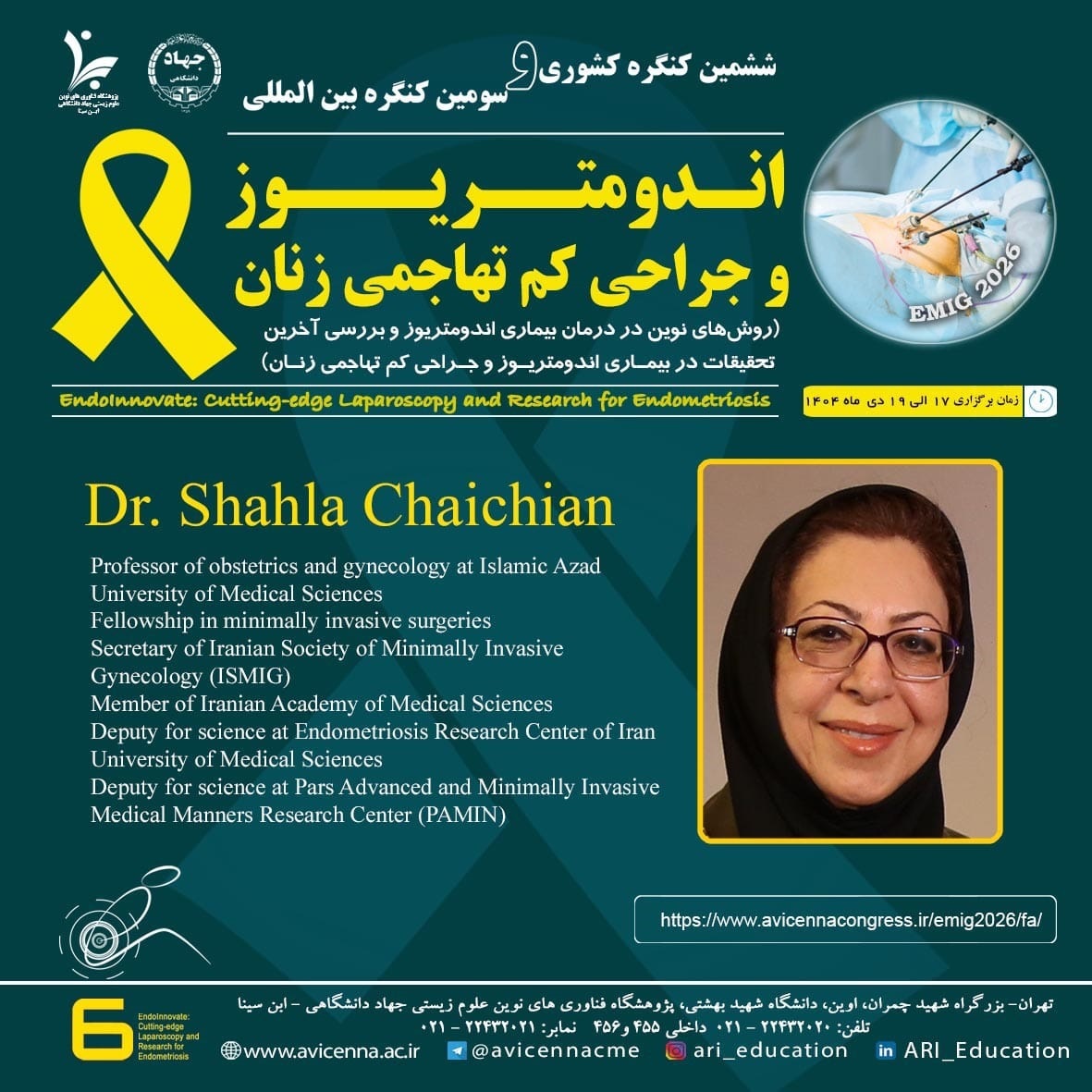 پژوهشگاه فناوری های نوین علوم زیستی جهاددانشگاهی - ابن سینا، ششمین کنگره ملی و سومین کنگره بین المللی اندومتریوز و جراحی کم تهاجمی زنان را در تاریخ 17 لغایت 19 دی ماه 1404 در تالار ابوریحان دانشگاه شهید بهشتی برگزار خواهد کرد.